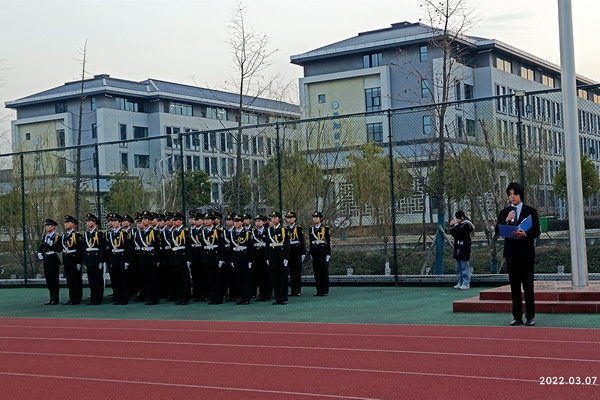 3月7日清晨,开云线上官网_开云(中国)在龙湖校区南田径场举行升旗仪式暨“四史”经典诵读活动。党委学工部秘书、国旗护卫队指导老师石志成,财经学院专职辅导员朱中军,财经学院2021级400余名学生和龙湖校区校八一社学生参加活动。活动由财经学院学生会艺术团顾驭天主持。