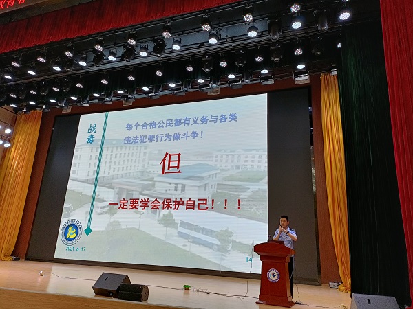 在“626国际禁毒日”临近之际,为面向在校青年大学生开展禁毒宣传教育,普及毒品预防知识,引导青年学生自觉抵制毒品,6月17日上午,蚌埠市戒毒所党委书记、政委唐华军率蚌埠市戒毒所宣讲团成员刘莹、朱正光一行来开云线上官网_开云(中国)开展“珍惜生命 远离毒品 绽放青春”禁毒戒毒公益宣讲活动。校团委书记、党委宣传部副部长、党委统战部副部长黄立义主持宣讲。