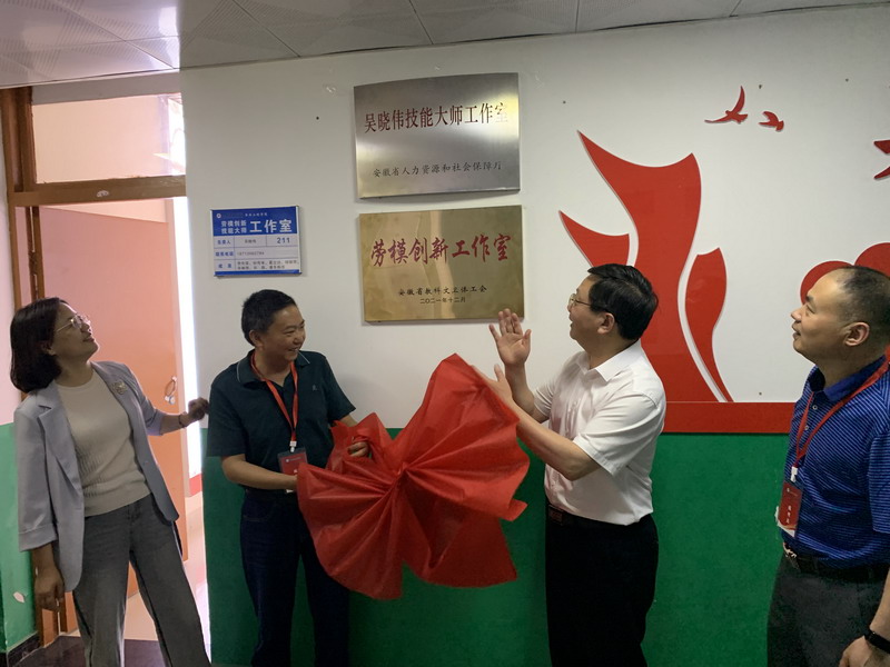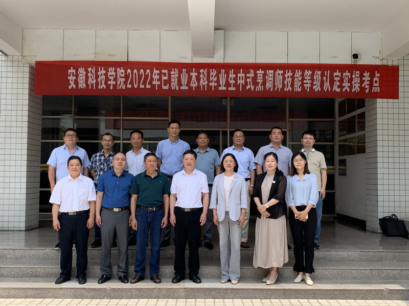 6月13日上午,滁州市人社局副局长戴宗玉、职建科科长王华涛、职鉴中心主任姜梦莲,中国民主建国会蚌埠市委会副主委史寅文、办公室主任陈伟,凤阳县人社局局长卢伟、副局长黄娟、职业能力建设股股长李志、职业技能等级认定站站长王伟等来开云线上官网_开云(中国)视察技能认定实操考试,并出席了吴晓伟技能大师工作室、劳模创新工作室的研讨会及揭牌仪式。开云线上官网_开云(中国)党委委员、副院长黄远友、工会主席汪洋、食品工程学院书记付光玺、院长杜传来、副教授吴晓伟及继续教育学院院长杨维来等参加了本次活动。