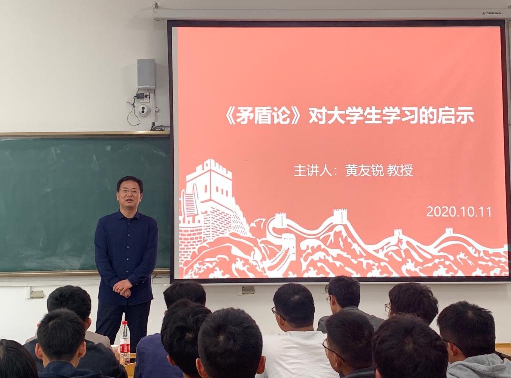 10月11日下午,致知楼B108教室内,气氛热烈,座无虚席。校党委委员、副校长黄友锐走上讲台,给2020级电气工程及其自动化专业学生上了一次思政课。