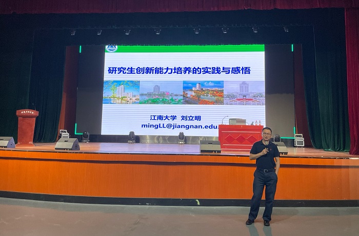 9月13日,学校邀请1996级校友、江南大学博士生导师刘立明教授来校为2024级研究生做入学教育第一课。报告会在大学生活动中心举行,由党委研究生工作部部长、研究生处处长张春雨主持。