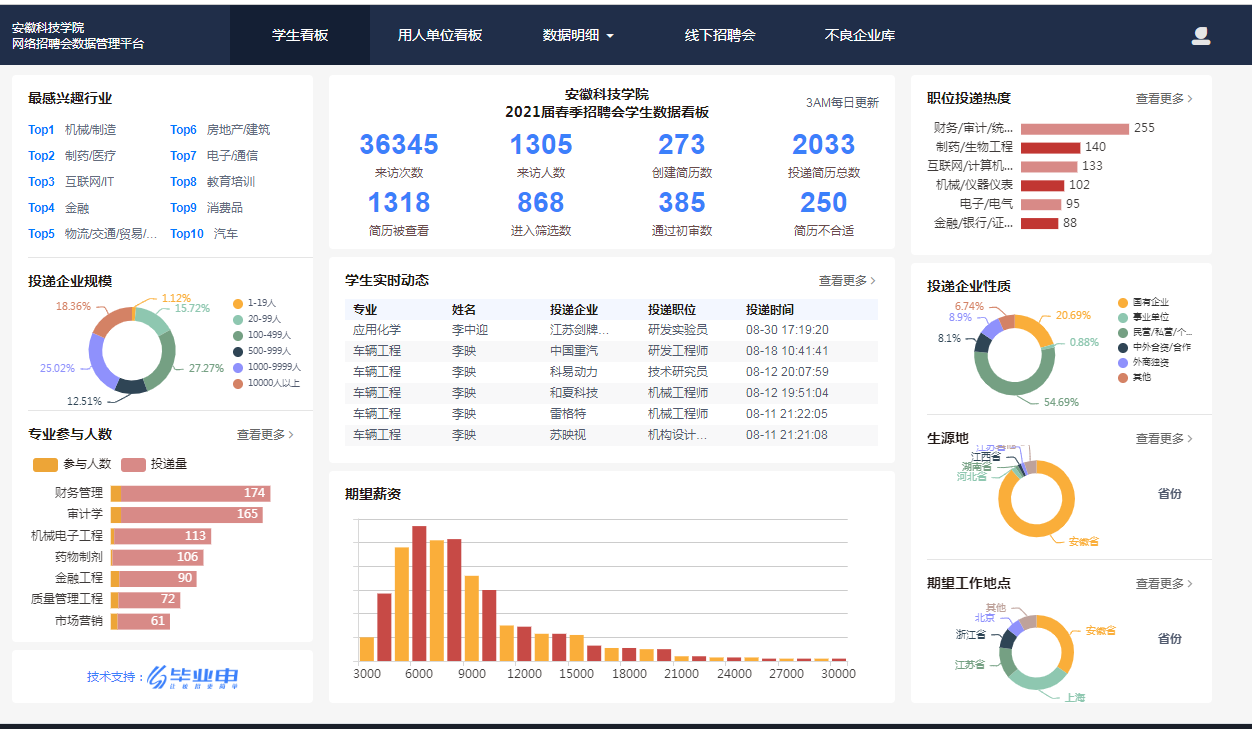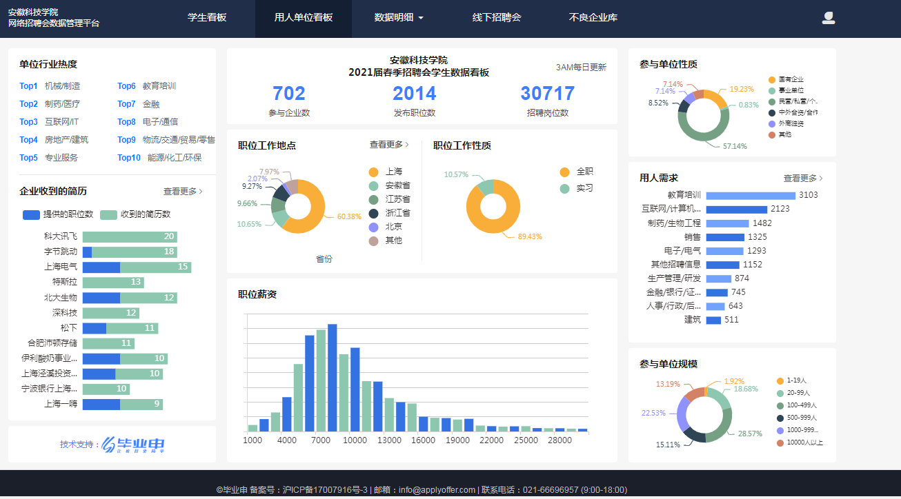 根据2018-2020三个年度毕业生就业质量报告,开云线上官网_开云(中国)毕业生省外就业主要面向长三角核心地区,其中,在沪就业比例一直在10%以上。毕业生去向就是就业工作取向,学校加强长三角区域就业布局,作为毕业生就业工作的重点布局领域。2020年下半年疫情缓解以来,学校积极与上海学生事务中心联络,继续拓展合作领域,截至2021届毕业生离校时,先后举办“多方联动、聚力就业”上海市2021届高校毕业生春季“安科之生”专场招聘会、“安科之生”春季就业冲刺月(互联网专场)、高校毕业生就业促进周2021年“安科之生”专场、毕业季“安科之生”专场、长三角招聘会开云线上官网_开云(中国)“海聚英才”2021年离校未就业毕业生专场云聘会、长三角“安科之生”2021届毕业生离校未就业专场,6个场次共有36345次访问记录,投递简历2033份,702家用人单位共发布5007个职位,73865个岗位,涉及机械制造、制药医疗、互联网等诸多行业领域,涵盖了数字经济、电子信息、新材料等重点发展产业,为毕业生融入长三角区域就业提供了广阔的双选平台。(特约通讯员:司萍 审核:施培智 编辑:张威)