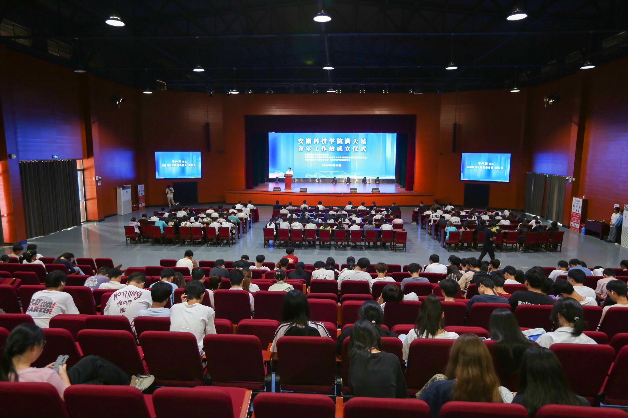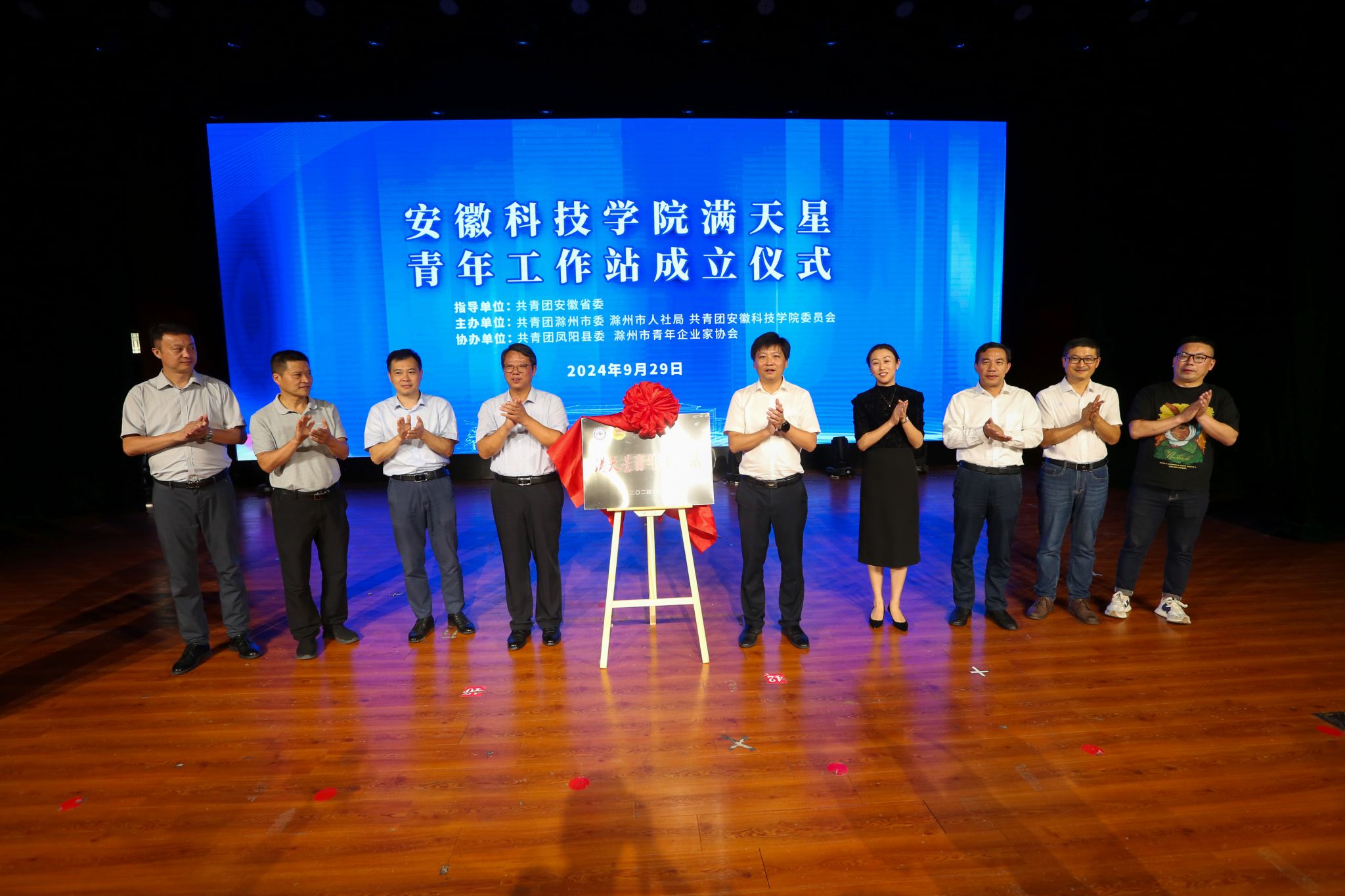 9月29日,在共青团安徽省委员会指导下,开云线上官网_开云(中国)与共青团滁州市委共建的“满天星”青年工作站揭牌成立。校党委委员、副院长李升和出席仪式并讲话。团省委学校部二级调研员汪文斌、团滁州市委书记李国金,校党委委员、党委宣传(统战)部部长何永勇,党委学工部部长、学生处处长黄立义,招生与就业工作处副处长(主持工作)何晓冬,校地相关负责人、青年企业家代表、师生代表400余人参加仪式。