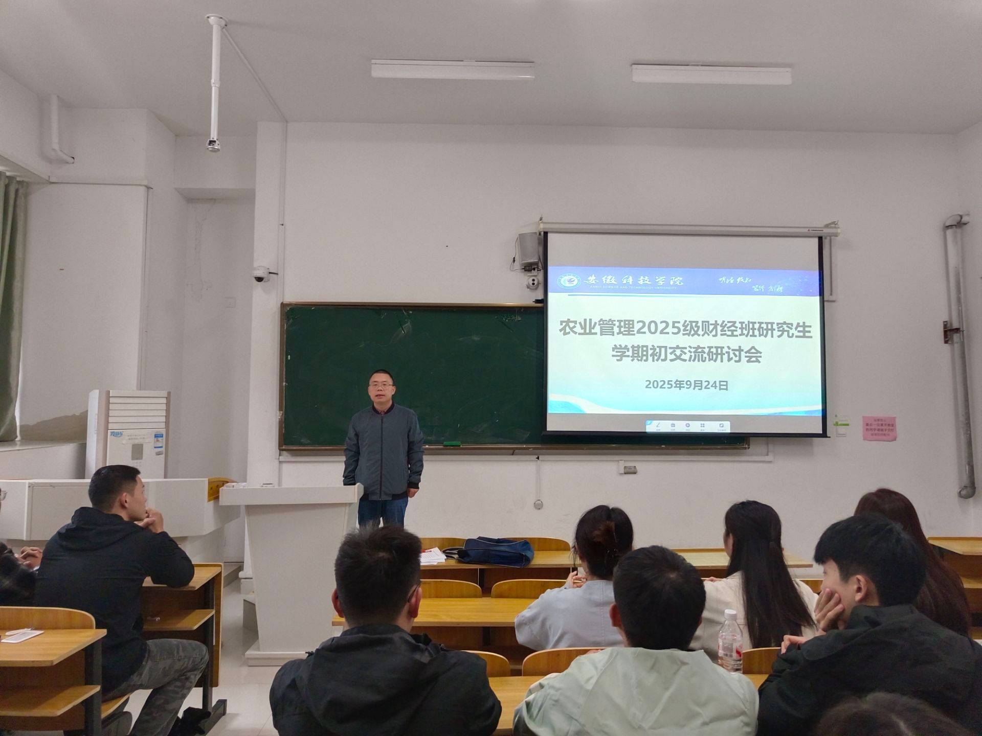 9月24日,财经学院在龙湖校区致知楼B109召开研究生专题会议,听取研究生对学院教育管理的建议,传达学校有关文件和会议精神,安排部署近期重点工作。学院党委副书记、硕士生导师耿广汉,学院2025级农业管理全体研究生参加会议。会议由学院研究生辅导员朱中军主持。
