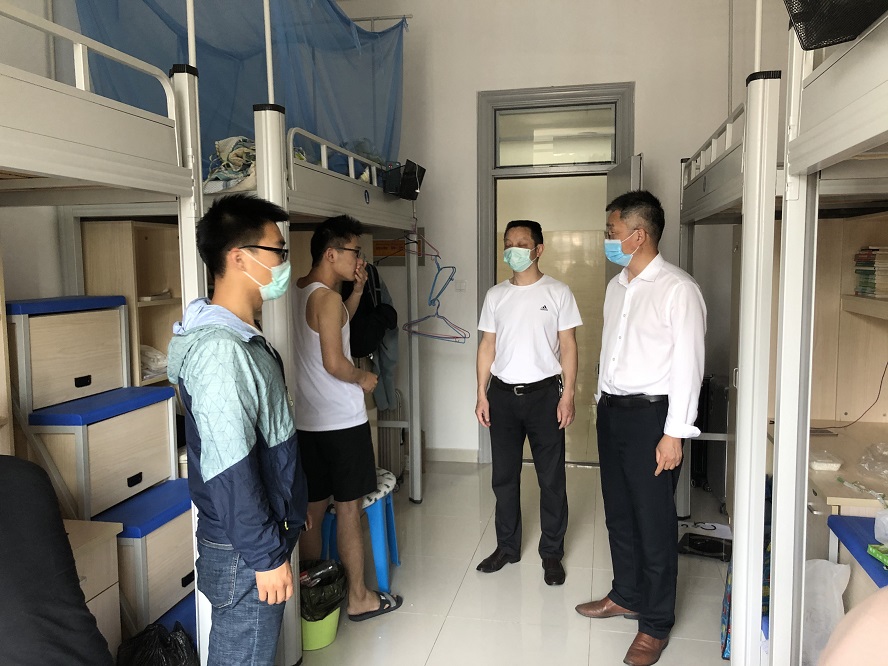 为深入了解返校毕业生在校期间的学习、生活和思想情况,5月28日上午,信息与网络工程学院党总支书记王振其,副院长余宏杰和专职辅导员陈凯、李军成深入学生宿舍看望慰问2020届毕业生,表达学院对毕业生的深切关怀和美好祝愿。