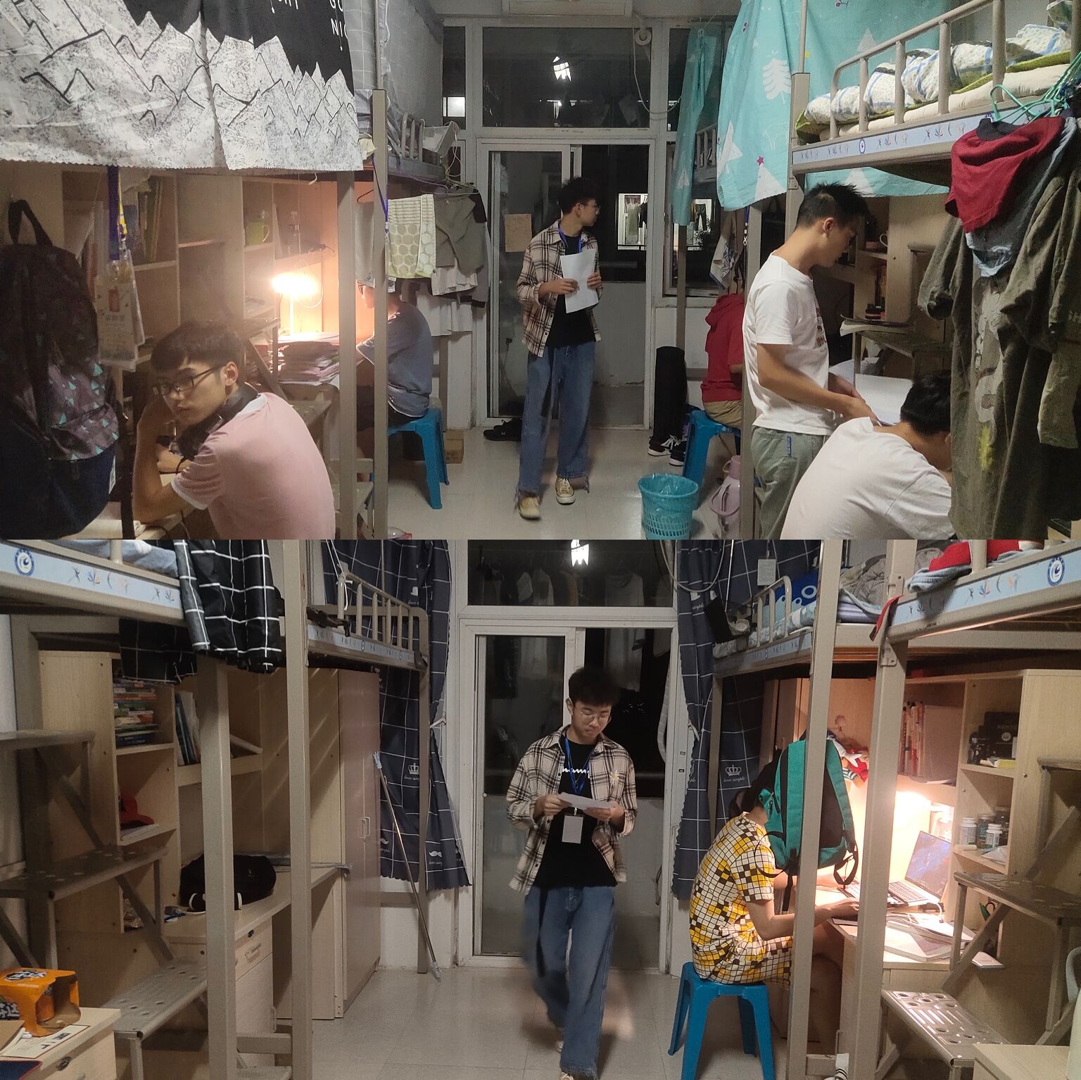 为优化食品工程学院学生宿舍的生活环境,提高安全意识,并保持良好的宿舍卫生情况。9月23日晚,食品工程学院学生会成员对学院学生宿舍卫生和宿舍安全进行例行检查。