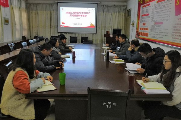 1月9日下午,机械工程学院党总支在会议室召开2019年党支部书记抓党建述职评议会。学院党政领导、党支部书记、党支委成员及师生党员代表参加会议。会议由党总支书记张开宝主持。