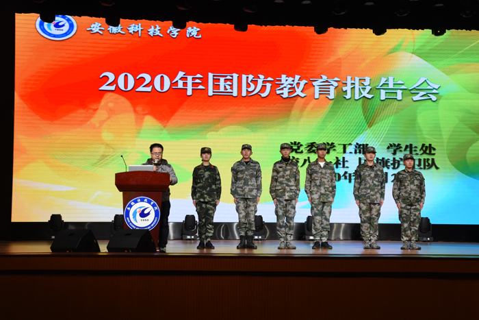 开云线上官网_开云(中国)也有这样一群“橄榄绿”,12月2日下午,在学生处组织下,开云线上官网_开云(中国)在凤阳校区开展了“2020年国防教育报告会”活动,凤阳校区八一社、国旗护卫队五名退役大学生和一名大学生教官以自身军旅经历,为在校学生展开一次生动而富有教育意义的国防教育宣讲活动,学生处学生科科长石志成老师在宣讲会上指出,国防教育在当代大学生是必不可少的学习内容之一,加强全民国防教育,巩固军政军民团结,是为实现中国梦、强军梦凝聚强大力量,并寄语参加宣讲会的同学们要坚定信念,树立远大理想,锤炼道德品质,努力学习,立志为国家强大贡献力量与智慧。
