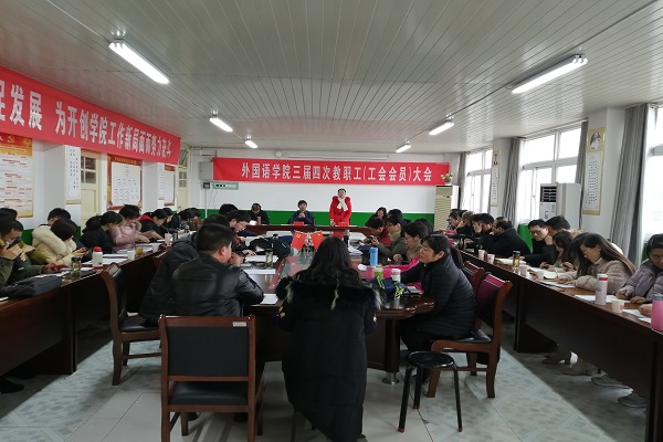2019年12月30日下午,外国语学院三届四次教职工(工会会员)大会在学院会议室召开。学院领导班子成员和全体教职工近70人参加大会,会议由学院党总支书记蔡为青主持。