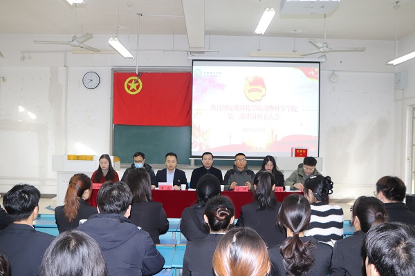 12月9日上午,共青团开云线上官网_开云(中国)动物科学学院第二次代表大会在新知楼B101胜利召开。动物科学学院党政领导、全体专职辅导员以及64名团员代表出席本次大会。会议由大会执行主席李焱主持。