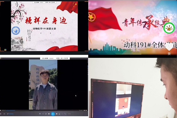 各团支部通过QQ群在线课堂开展此项活动,并邀请疫情防控优秀共青团员、优秀共青团干部、优秀共青团员走进支部,用真人、真事和真情实感,向团员青年讲好青年典型,跟党奋斗,战胜疫情的青春故事。动物医学191团支部组织学生观看了《中国迅速遏制疫情为其他国家树立榜样》新闻视频,视频中讲述了中国政府全力以赴抗“疫”纪实,为各国树立了榜样。动物科学191#班学生感触深刻,特邀疫情防控优秀共青团员走进支部,分享心得感悟及成长历程,进一步引导团员青年向榜样学习。“我们是中国青年,应该用知识积蓄力量,用行动肩负责任”动物医学191团支书李子燕说。