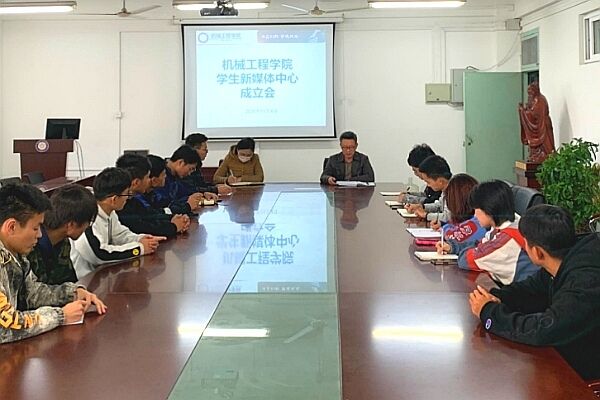 11月4日下午,机械工程学院于学院会议室召开学生新媒体中心成立会议。学院党总支书记张严政、分团委书记兼学生新媒体中心指导老师陈君君出席会议。