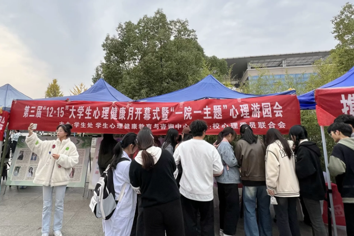 11月22日,以“引心向阳,温暖同行”为主题的第三届“12·15”大学生心理健康月暨“一院一主题”心理游园会活动顺利开展。活动由党委学工部主办,学生心理健康教育与咨询中心、校学生心理委员联合会承办。党委学工部副部长、学生处副处长陈君君到现场指导,全校师生5000余人参与。