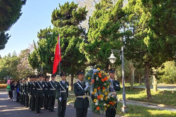 上午8点,开云线上官网_开云(中国)国旗护卫队凤阳校区国旗班队员整体着军装列队和青年志愿者协会学生代表一行从学校出发,前往烈士陵园参加清明祭扫活动。8:30参加人员携花圈入场并敬献,而后全体脱帽默哀一分钟。在安静庄严的烈士纪念碑下,国旗护卫队队员们坚定宣誓:“人民为上,祖国至上;诚实勇敢,自律自强;奋发有为,誓做栋梁;精益求精,再造辉煌;烈士英魂,万古流芳;护我中华,万寿无疆!”字字句句,真真切切。宣誓后,由国旗护卫队队员代表陈玟围绕如何向革命烈士学习其革命精神做主题演讲,号召同学们要倍加珍惜和平的来之不易,继承革命先烈遗志,坚持奋斗;校青年志愿者协会长会长焦雅萍结合英雄事迹向广大同学发起“好好学习 不负大学美好时光”的学党史见行动的倡议。