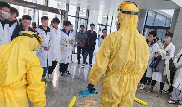 为全面检验实验室应急处置能力,强化师生实验室安全责任意识、风险意识,树牢安全底线,确保师生安全,12月8日,化学与材料工程学院在尚行楼C栋一层实验室开展实验室安全应急演练,学校教务处、保卫处和学院安全领导小组成员、学院师生150余人参加。