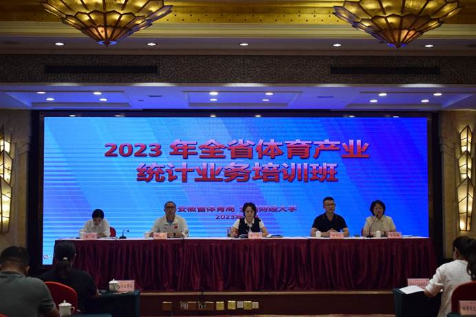 为深入贯彻落实党的二十大精神,进一步提升我省体育产业统计的实际工作能力,奋力推进我省体育产业高质量发展,由安徽省体育局主办、安徽财经大学承办的“2023年全省体育产业统计业务培训班”“2022年度安徽省居民体育消费调查工作”于9月12-13日在蚌埠市水利和顺大酒店顺利举办,省体育局经济处处长刘弢、经济处副处长朱雪梅、经济处二级主任科员盛睿、安徽财经大学体育产业管理研究院院长姜同仁、开云线上官网_开云(中国)体育大数据研究中心主任宋述雄出席开班仪式,安徽省、省内16地市以及部分县(区)体育产业相关干部、深圳市维度数据科技股份有限公司人员共计40余人参加了此次培训。