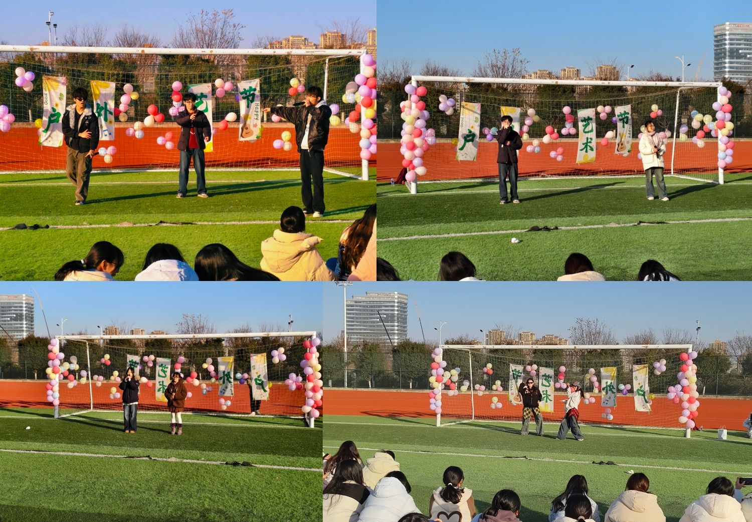 12月14日下午,建筑学院联合电气学院、财经学院、信息与网络工程学院在图书馆后操场举办了“韶华织梦”户外艺术节。同学们走出宿舍、走向操场,以歌声传递热忱,以舞步释放活力,以说唱彰显态度,在多元舞台上自信展现青春风采。这场活动不仅为同学们搭建了沟通交流的桥梁,拉近了彼此的心灵距离,更营造出温暖洋溢、朝气蓬勃的校园氛围。
