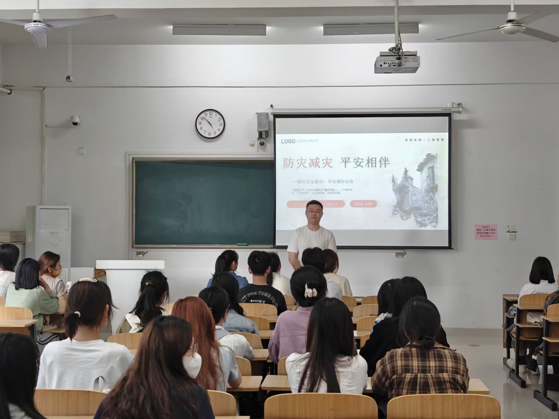 各班级召开主题班会宣传动员。各班级辅导员围绕今年全国防灾减灾主题,介绍了“防灾减灾日”的由来,重点阐述了常见的灾害类型,组织学生观看防灾减灾及自救互救宣传片,介绍自然灾害发生时的应急常识、自救互救常识和逃生常识,鼓励学生掌握十条自救法则,在面对灾害时科学避险。