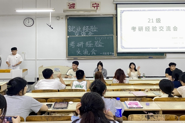 为助力外国语学院学生明确考研目标,掌握备考技巧,5月26日晚,外国语学院在求知楼A105教室举办考研经验交流会。交流会邀请了2024届成功考取研究生的曹孟、宋义娜、张怡婷、董书桓等四位毕业生分享考研经验。学院2021级全体学生参加交流会。