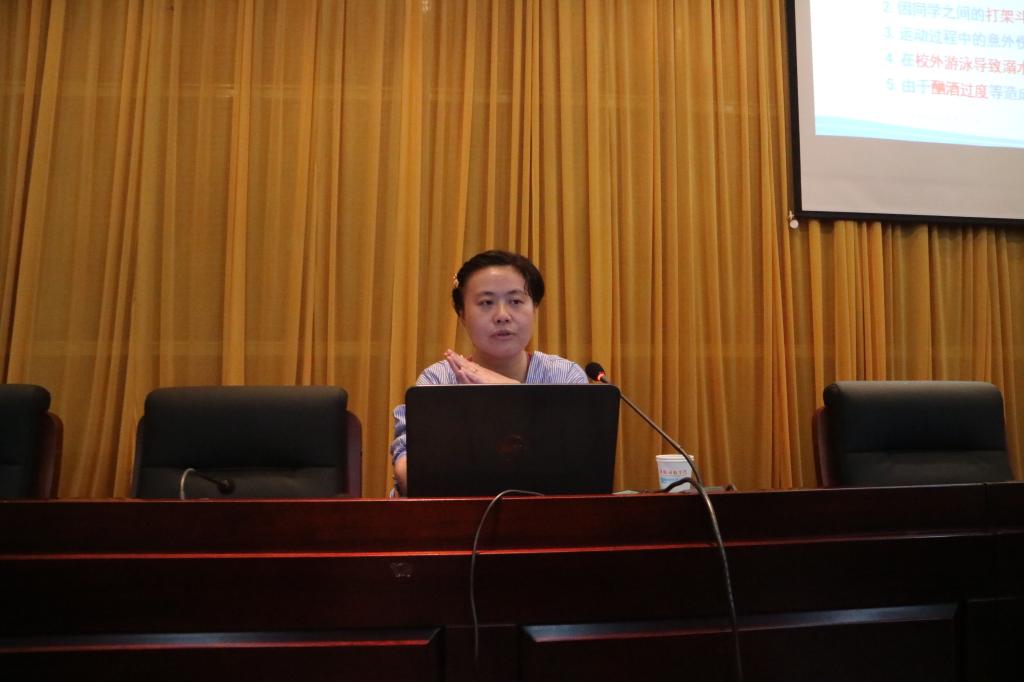 蔡为青从外国语学院开学报到当天的迎新报道情况开启本次安全讲座培训,她分别从安全、健康、学习三方面对新生进行安全教育,通过播放相关安全视频短片、讲述高校典型案例等形式,从人身安全、交通安全、饮食安全、网络安全等多方面对新生做了详细的讲解,以增强学生的安全防范意识。