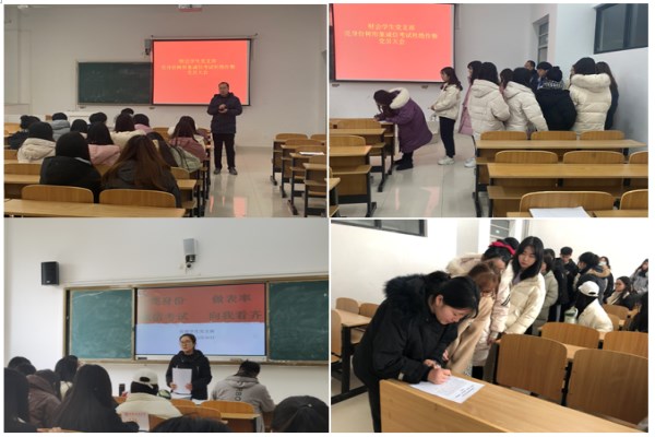 为进一步加强学生考风考纪教育,充分发挥学生党员、入党积极分子在期末考试中的先锋模范作用,财经学院财会学生党支部和经贸学生党支部分别于近期召开“亮身份、做表率、诚信考试,向我看齐”主题教育大会。支部全体党员参加会议。