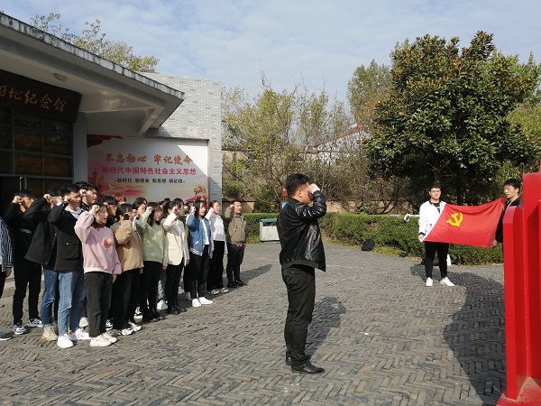 活动中,在纪念馆前,崔北坤带领全体学生党员重温入党誓词,全体党员高举右拳,字字铿锵,重温入党誓词,彰显了铭记历史不忘初心,缅怀先烈牢记使命的坚定政治信念。通过参观纪念馆中的图片、文字记载、实物等相关史料,学生党员全面了解了渡江战役的历史过程,渡江战役历时42天,中国人民解放军以木帆船为主要航渡工具,一举突破敌军的长江防线,以运动战和城市攻坚战相结合,合围并歼灭其重兵集团取得胜利,为全中国的解放奠定了重要的军事和政治基础。在参观中,同学们观看实物,聆听讲解,回顾珠城历史上的峥嵘岁月,为革命先辈的无私奉献、不怕牺牲的精神所感动,也为这座军民雨水情的城市而自豪。