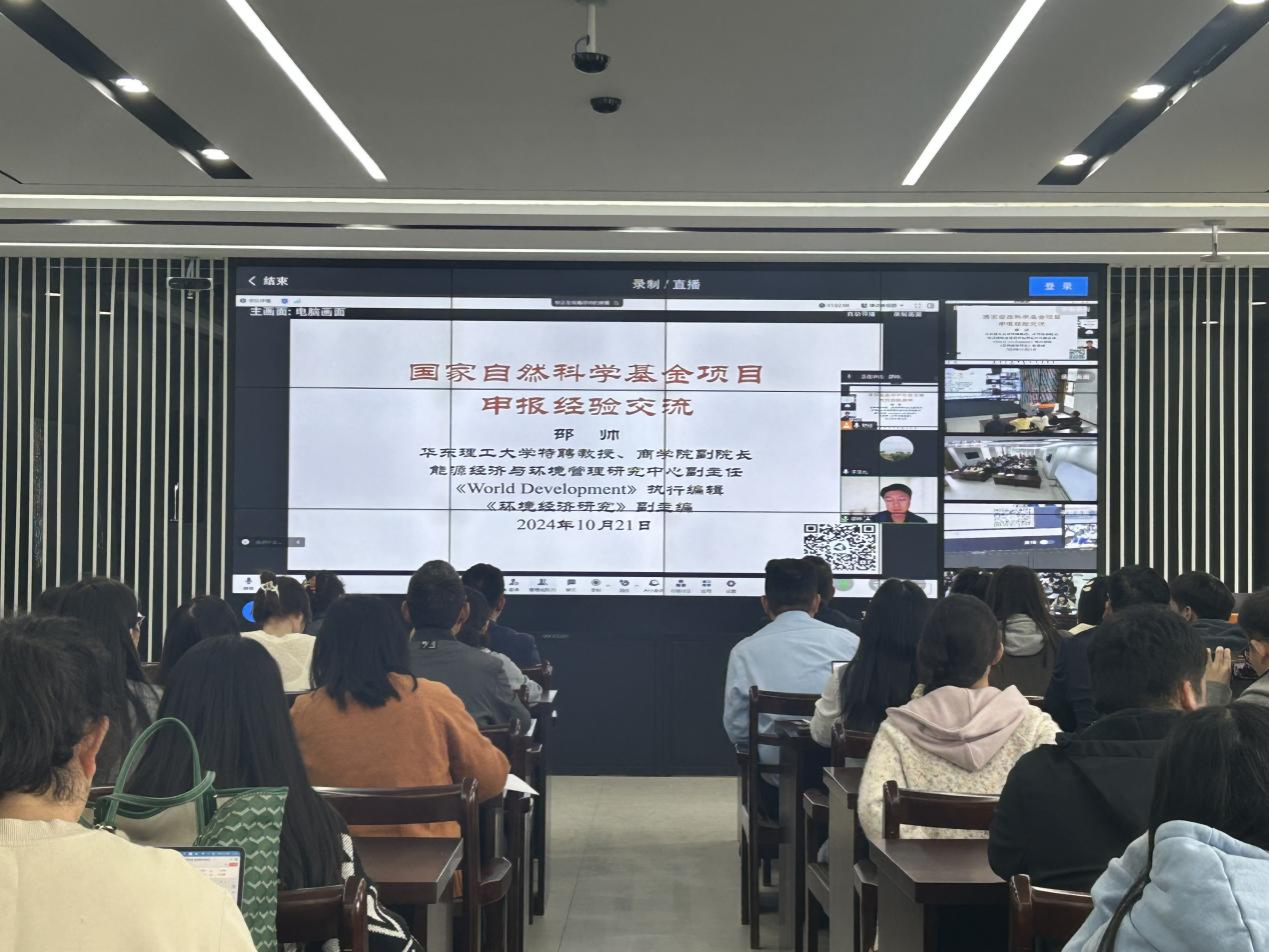 10月21日下午,财经学院邀请华东理工大学特聘教授、商学院副院长、能源经济与环境管理研究中心副主任、《World Development》执行编辑、《环境经济研究》副主编邵帅教授作“国家自然科学基金项目申报经验交流”的主题讲座。本次讲座由财经学院副院长李宝礼主持,财经学院党政领导、学院教师、研究生等参加。