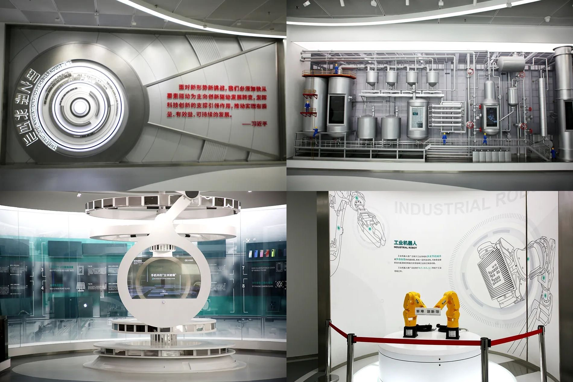 蚌埠创新馆是蚌埠市创新成果对外展示的综合性平台。参观的师生进入展厅后,先观看了环幕影片《创新之城·拥抱未来》,了解到蚌埠科技创新的整体情况。随后参观主题为“创之光·耀珠城”的一层展区,参观师生沉浸在观影空间中,了解蚌埠的重大创新成果和历史事件。在二层展厅中,柔性可折叠玻璃等一系列创新成果的展示引起参观师生的阵阵惊叹。在三层展区的聚乳酸生产线和互动区域,通过模型、艺术装置、数字沙盘以及声光电等多媒体手段为前来参观的师生提供了近距离了解科学原理和创新研发的平台。在未来时空影院,师生们身处于未来世界的既视感,跟随影片一起沉浸式漫步于未来时空,邂逅科技创新的魅力。