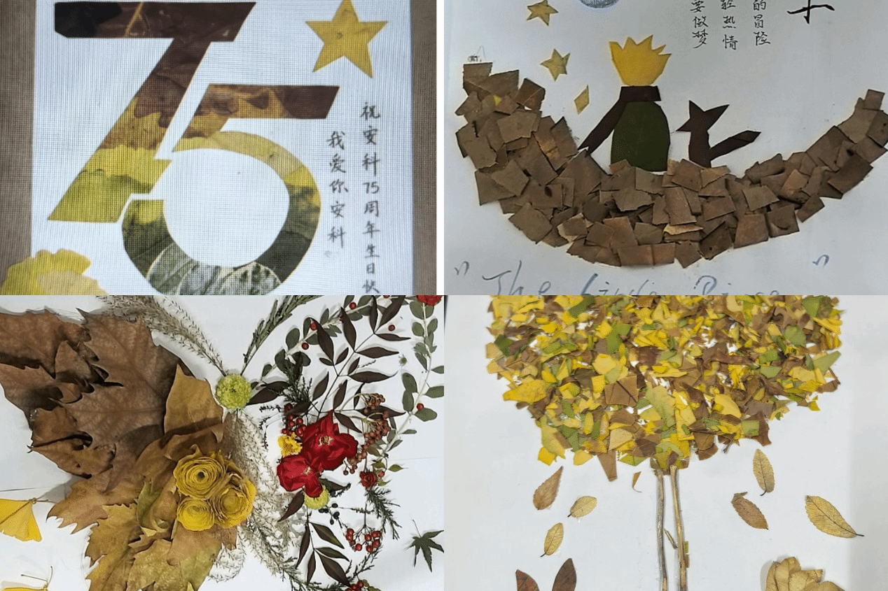 活动期间,同学们纷纷走进校园角落,收集形态各异的落叶,充分发挥想象力与创造力,通过剪裁、拼接、粘贴等方式,将一片片普通的落叶转化为一幅幅精美的画作、一个个灵动的摆件、一束束别致的花束。作品主题丰富多样,或展现校园美景,或传递温暖情感,或寄托美好愿景,每一件作品都充满了创意与巧思,彰显了同学们独特的审美情趣与积极的生活态度。