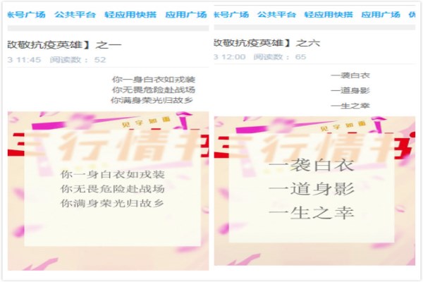 本次主题创作活动以“三行玲珑,情深意浓”文字创作方式开展,主题鲜明、形式活泼,吸引了广大同学积极参与。活动开展以来,青年学生围绕主题积极开展创作,他们通过精炼的语句抒发真挚的情感,深情地表达了在抗击疫情期间涌现出的勇往直前、不怕牺牲、以人民为中心的最美逆行者们的敬佩与感恩之情。此次主题创作活动还通过线上投票的方式角逐出了一、二、三等奖等奖项。