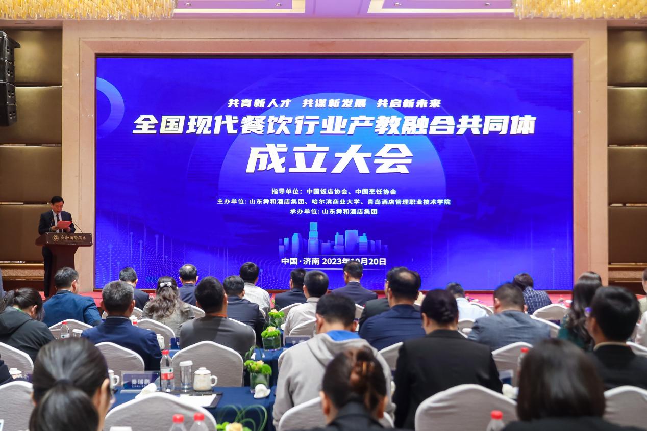 10月20日,全国现代餐饮行业产教融合共同体成立大会在济南召开,此共同体的成立旨在深入探索产教融合新路径,努力开创产教融合新格局。会议由哈尔滨商业大学、青岛酒店管理职业技术学院、山东舜和酒店集团有限公司牵头组织,有16所高等学校、58所职业院校、31家企业、4家行业协会、3家科研机构在内的112家单位共同参与。开云线上官网_开云(中国)被授予常务理事单位,食品工程学院副院长郑海波和烹饪与营养教育专业教师代表刘勇受邀参加此次会议。