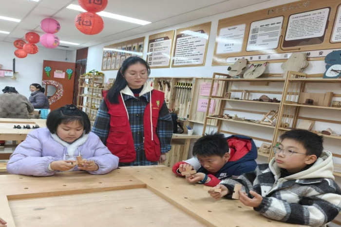 2月7日,支部党员齐安琦积极响应马鞍山市妇联“她公益”项目号召,投身鲁班锁文化课堂志愿服务。在习鲁木工坊,她化身传统文化传播者,指导儿童拆解组装鲁班锁,通过寓教于乐的方式激发孩子们的动手能力和创新思维。活动不仅让传统技艺焕发新活力,更以“党建+公益”模式探索了党员服务群众的新路径,彰显了新时代青年党员的文化自觉与社会责任感。