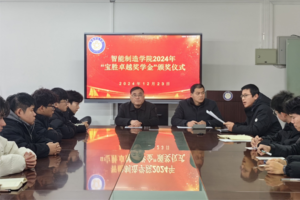 12月24日下午,智能制造学院在会议室举行“宝胜卓越奖学金”颁发仪式,学院党委书记姚勇,党委副书记张程,学院有关教师、获奖学生及学院各班级主要学生干部参加。仪式由张程主持。