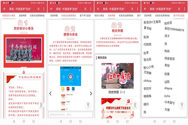 为贯彻落实《关于开展“网上重走长征路”暨推动“四史”学习教育工作的通知》的文件精神,引导学生讲信念、讲信心,厚植爱国情怀,外国语学院以“深入学习‘四史’ 坚守初心使命”为主题,从2020年11月起在全院范围内组织开展为期近一年的“四史”学习教育系列活动。