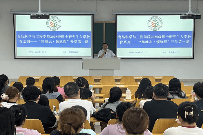 为给研究生新生的学习与生活定调、定向、定心,引导同学们以饱满的精神状态开启研究生新阶段,9月1日,食品科学与工程学院在学院101学术报告厅顺利开展2025级研究生“开学第一课”活动。学院党政领导出席并主讲。
