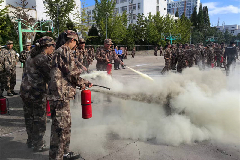 在疏散演练中,各连军训教官为学生讲解消防应急疏散知识及注意事项,保卫处指挥组安排各学院辅导员和物业管理人员进行疏散路线引导,安排医务人员和应急队伍进行现场保障,学校消防微型消防站队伍进行灭火救援,组织消防维保和专业人员营造演练场景。全体新生按照预定演练方案,在急促的消防警报声中,用事先准备的湿毛巾掩住口鼻,俯身快速穿过演练浓烟,有序疏散到室外安全区域。