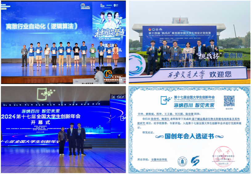 强化项目管理,提升创新创业能力。2024年立项国家级大创项目105项,其中重点支持领域项目2项。省级项目300项,校级项目99项。组织开展了592个大创项目结题验收,其中566个项目通过验收,占比95.6%,评选出优秀项目74项。在教育部主办的全国大学生创新年会中,化学与材料工程学院学生许坤主持的《基于碱金属卤化物太阳能电池制备及其性能研究》项目入选第十七届全国大学生创新年会并完成交流展示。
