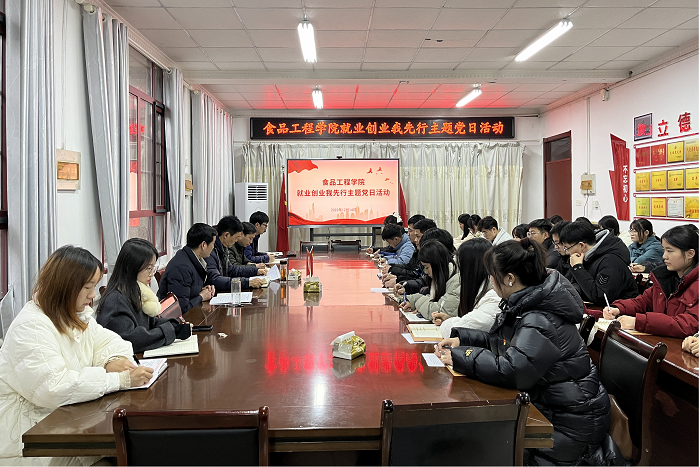 为深入学习贯彻习近平总书记关于高校毕业生就业创业工作的重要指示批示精神,落实就业优先战略,引导毕业生党员树立正确的成才观、职业观、就业观,12月14日下午,食品工程学院党委开展了“就业创业我先行”主题党日活动。学院党委书记付光玺出席活动并指导讲话。活动由学院党委副书记王广良主持。