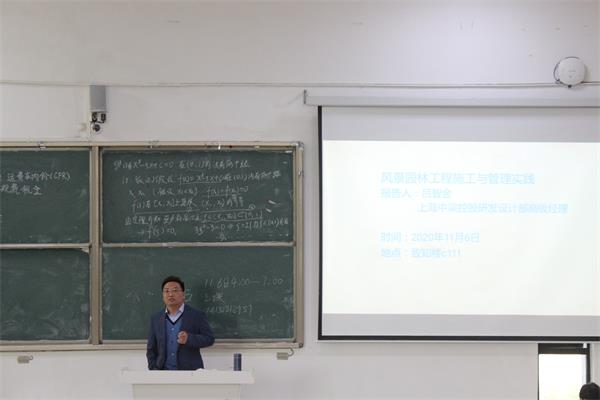 为拓宽风景园林学生专业视野,加深对风景园林施工与管理的认识,11月6日下午,建筑学院在致知楼c111举办了一场《风景园林工程施工与管理实践》报告会,建筑学院优秀校友上海中梁控股研发设计部高级经理吕智金应邀做报告,建筑学院风景园林专业学生及相关教师参加了报告会。报告会由风景园林教研室主任王雪娟主持。