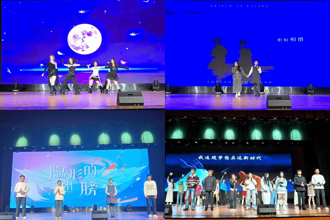 晚会节目形式多元,亮点迭出。在DC街舞社灵动柔美的《佳人》舞蹈中,晚会正式开启,舞者们的轻盈舞姿瞬间点燃了现场氛围。其中,扬梦主持队带来的《青春中国》朗诵慷慨激昂,既展现了朗诵者饱满的情感张力,更唤起了全场的青春热忱与家国情怀,成为传递正能量的高光时刻。晚会还特别设置了反电诈互动问答环节,以轻松有趣的方式普及安全知识,同学们踊跃参与,在欢声笑语中提升了防范意识。