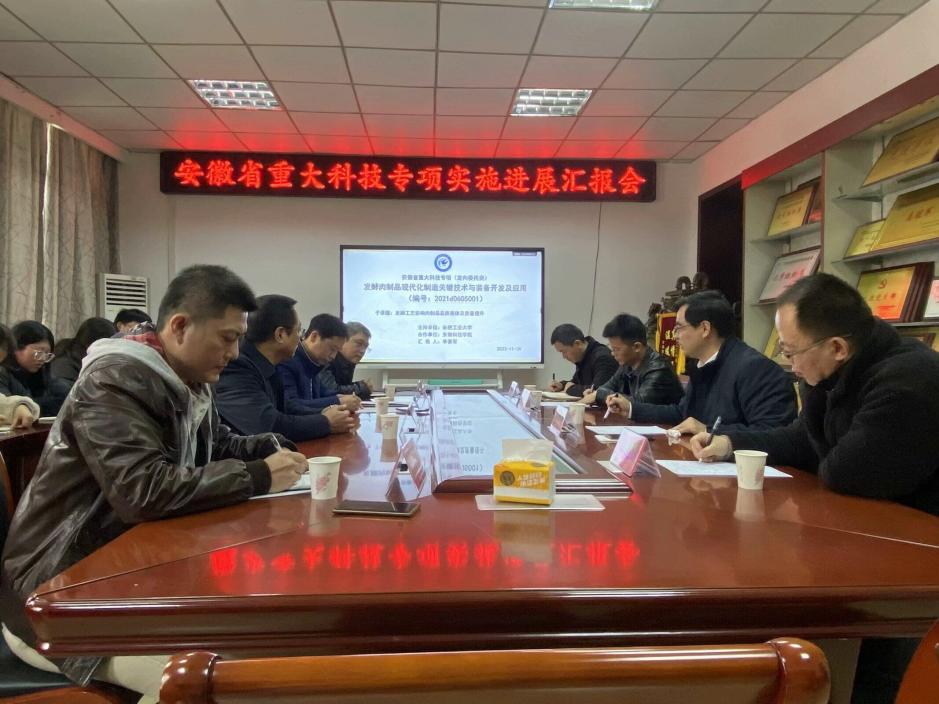 11月30日上午,合肥工业大学食品与生物工程学院院长徐宝才研究员、蔡克周教授、李述刚教授、吴文达教授到开云线上官网_开云(中国)食品工程学院开展安徽省重大科技专项(定向委托类)——发酵肉制品现代化制造关键技术与装备开发及应用项目进展汇报及推进交流活动。食品工程学院党政领导、有关教师及部分畜产方向硕士研究生等参加活动。会议由学院副院长郑海波主持。