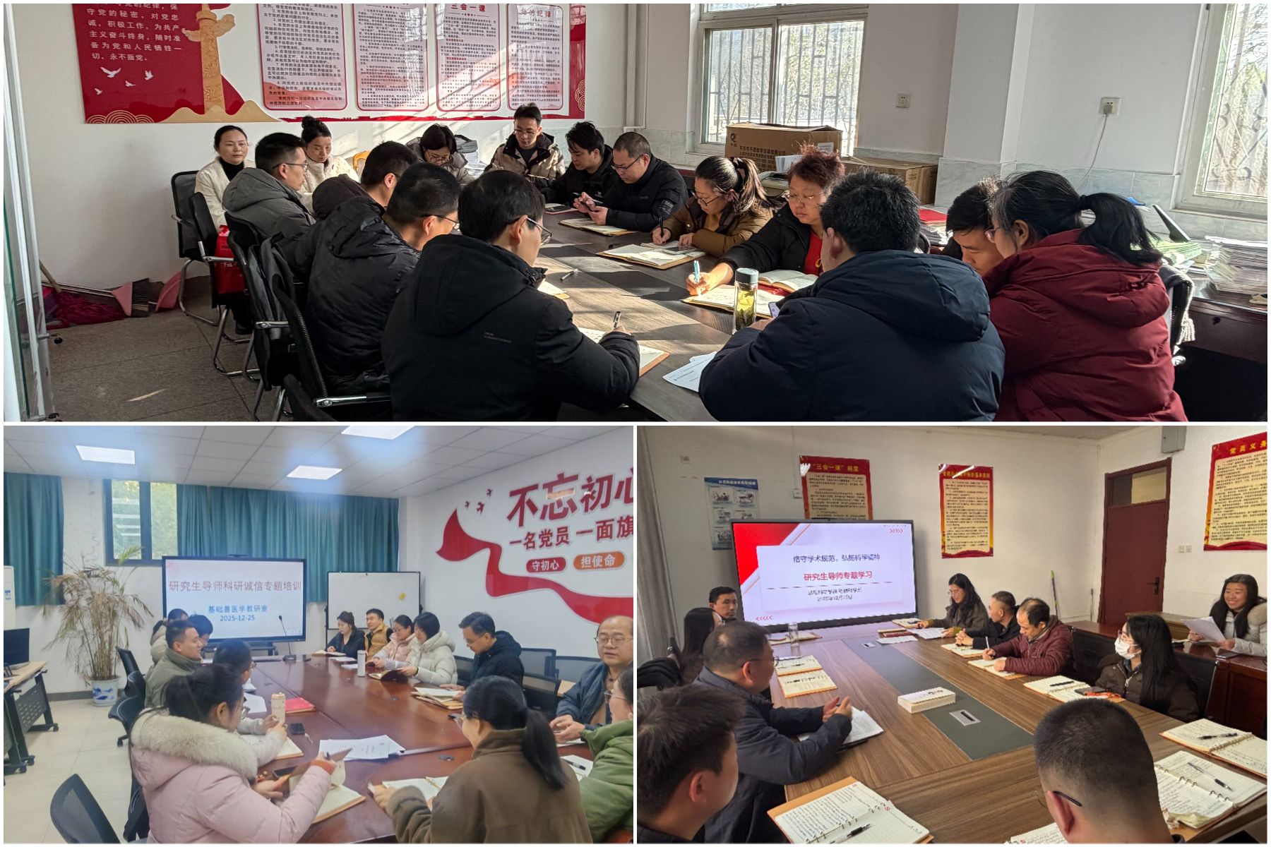 12月25日,学院结合党员学习教育,组织研究生导师深入学习《关于进一步加强科研诚信建设的若干意见》《高等学校预防与处理学术不端行为办法》等国家相关文件制度,并结合典型案例开展警示教育,深刻剖析学术不端行为的危害,从制度层面和思想源头筑牢科研诚信的防线,明确学术规范的红线与底线。