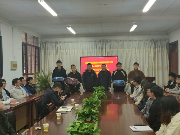 张轶辉首先对安徽瑞诚福田公司的到来表示热烈欢迎,对他们的赞助表示衷心感谢,并为在场同学介绍了农学院与瑞诚福田公司的长期合作关系,也希望今后彼此能进行更深入的合作交流。随后,在该公司任职的2013届毕业生代表胡晓娣对瑞诚福田公司的发展模式及日常工作模式进行了简要的介绍,希望瑞诚福田能与农学院的同学一起成长进步。在会服交接中,李国好亲自为学生会、易班、金禾创新创业中心学生代表递交了会服,学生组织代表也对该公司的赞助表达了感谢。