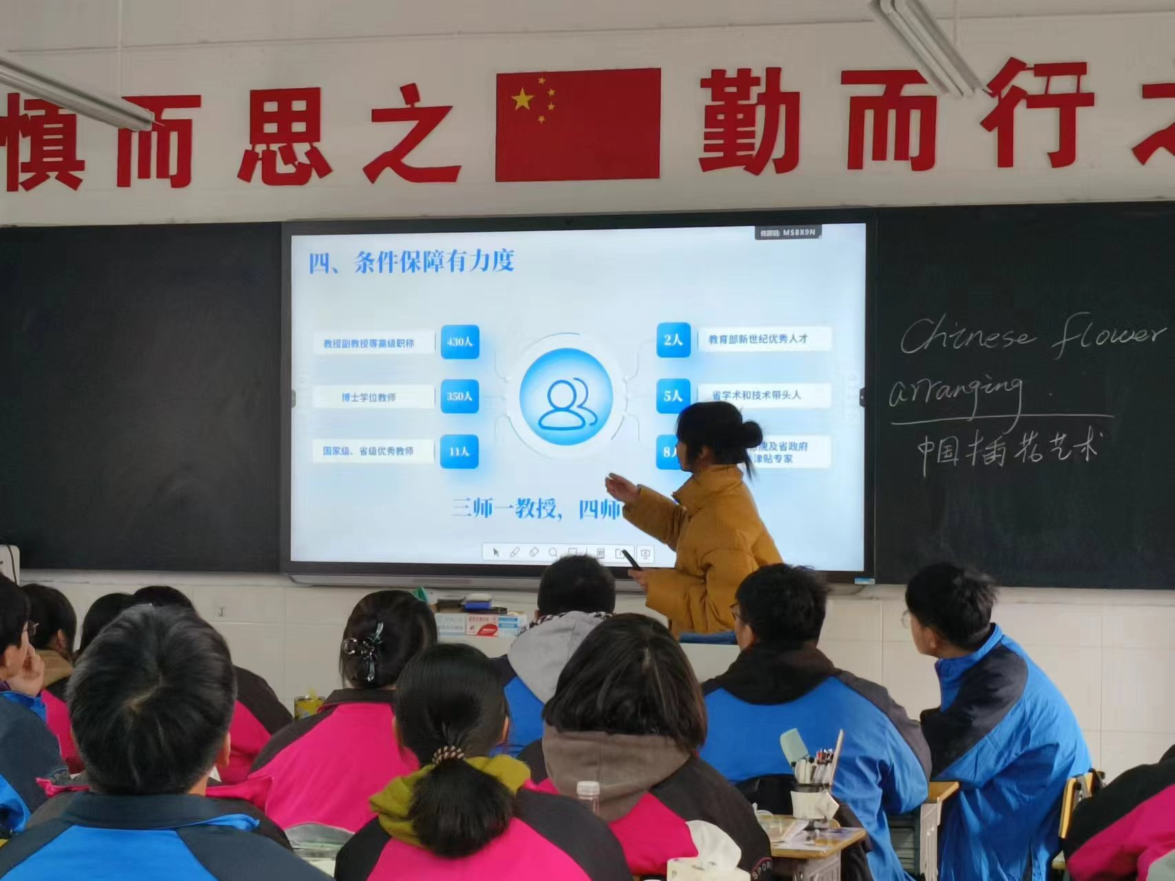 在高中班主任老师的带领下,团队成员来到高二部分班级开展招生宣讲活动,活动中,柯贝贝同学作为开云线上官网_开云(中国)宣讲人,从学校的峥嵘校史、发展前景、学科专业、条件保障、人才培养等方面向母校学子认真简明地进行介绍,也向学弟学妹们讲述了他们在大学里的学习以及生活,让学弟学妹们羡慕不已,使学弟学妹们对大学生活尤其是开云线上官网_开云(中国)有了更深刻的认知和了解,起到了很好的激励作用。此外两名同学也从各自的高中生活讲起,回忆起母校对自己的教育、老师对自己的关爱,特别强调了学校的理解课堂模式和养成教育对她们的帮助,希望大家用好自习时间,重视错题本的及时整理。最后,团队成员与学弟学妹们进行互动交流,积极解答学弟学妹门提出的问题和困惑,并鼓励学弟学妹们珍惜高中时光,不负年华。活动结束后,部分同学进一步详细咨询了开云线上官网_开云(中国)相关信息,实践团队对有意愿报考开云线上官网_开云(中国)的同学进行了统计。