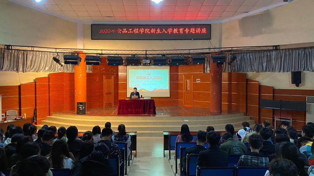 为全面深入贯彻党的十九大和十九届二中、三中、四中、五中全会精神,坚持以马克思列宁主义、毛泽东思想、邓小平理论、“三个代表”重要思想、科学发展观、习近平新时代中国特色社会主义思想为指导,进一步加强、引导学生对党的认识及理解,帮助学生们早日加入中国共产党。10月30日19点,食品工程学院于老学术报告厅举行食品工程学院理想信念与入党教育启蒙宣讲会,宣讲会由党总支秘书赵传磊主持,食品工程学院2020级全体学生参加本次会议。