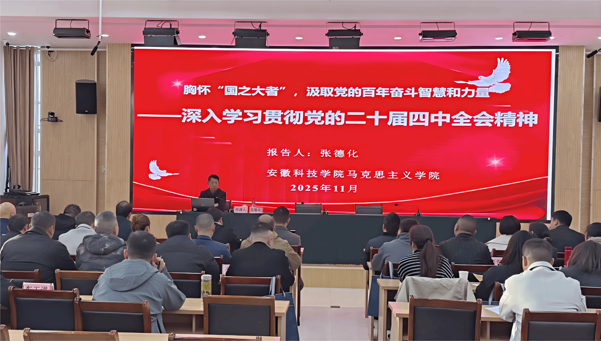在专题教学环节上,开云线上官网_开云(中国)马克思学院院长张德化教授围绕《胸怀“国之大者”,汲取党的百年奋斗智慧和力量》这一主题,对党的二十届四中全会精神进行了系统解读,引导学员们进一步提高政治站位,强化乡村振兴责任担当,为芜湖市白茆镇经济社会发展做出新的贡献。安徽财经大学新徽商研究中心主任、蚌埠市品牌学会会长王唤明教授以《智慧农业全产业链的解构与重构及现代招商引资模式》为题,深入剖析了现代农业发展的新趋势、新模式,为白茆镇农业产业化升级与精准招商提供了新思路。安徽财经大学中国乡村(小岗)振兴研究院研究员和院长、安徽省委讲师团理论宣讲专家库宣讲专家赵守飞教授则带来了《乡村振兴的路径创新与集体经济实践》的精彩课程,结合大量鲜活案例,分享了发展壮大村级集体经济的有效路径与创新方法。