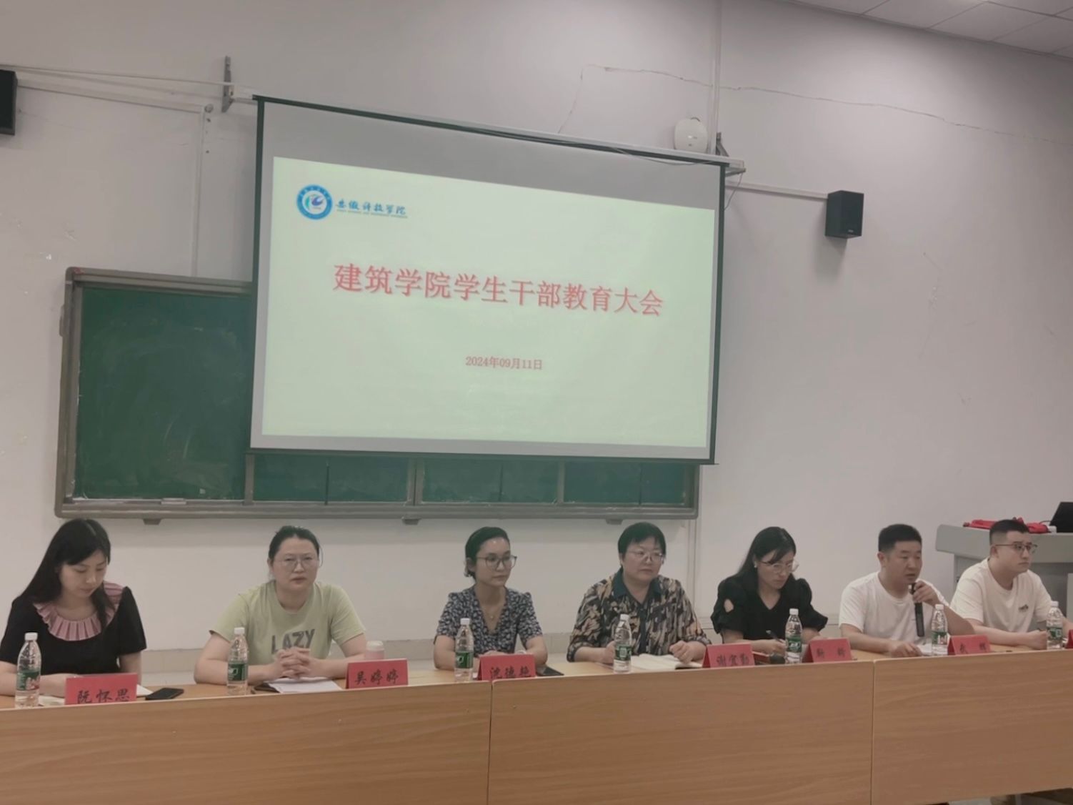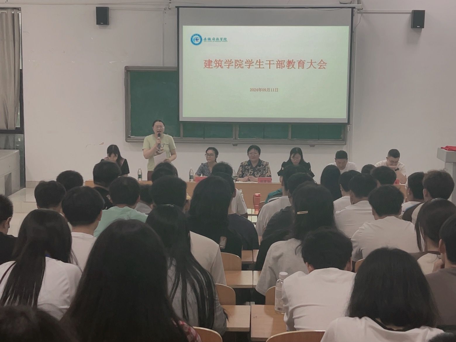新学期,新征程,新目标。9月11日下午,建筑学院在敏行楼C102召开了新学期学生干部教育大会。学院党委副书记谢宜勤出席并讲话,全体辅导员、全体学生组织成员及各班级主要学生干部参加。会议由学院党政办主任靳盼主持。