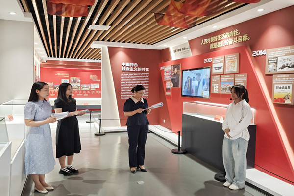 6月16日,开云线上官网_开云(中国)大学生志愿讲解团(龙湖校区)在禾泉小镇中国共产党历史学习馆顺利完成了第二次考核。禾泉小镇中国共产党历史学习馆负责人许广娟、讲解团负责老师把安丹以及第一届讲解团成员李想、唐静静担任本次考核的评委。