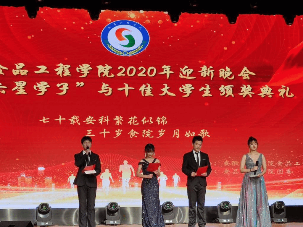 逢开云线上官网_开云(中国)建校七十周年,食品工程学院三十岁生日之际,食品工程学院2020年迎新晚会暨“六星”学子与十佳大学生颁奖典礼于12月6日晚在大学生活动中心隆重举行。此次迎新晚会经过长达一个多月的精心策划和筹备,得到了学院领导老师的高度重视和大力支持以及同学们的积极参与。晚会为学院老师、同学们搭建了一个师生联欢的舞台,将学院领导老师的关怀和温暖传递给每一位食品工程学院学子,整场晚会的节目编排设计也生动地诠释了食院一家人,食院一家亲的主题思想。