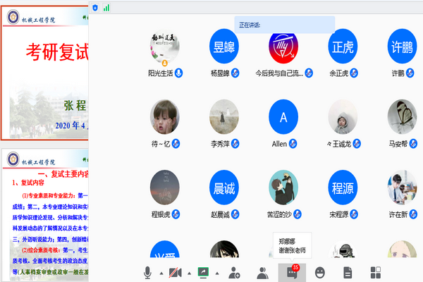 4月27日下午,机械工程学院党总支秘书张程为学院2020届考研的学生举办针对复试(调剂)等内容的“云指导”。学院近100名即将参加考研复试(调剂)的同学在“云端”聆听。